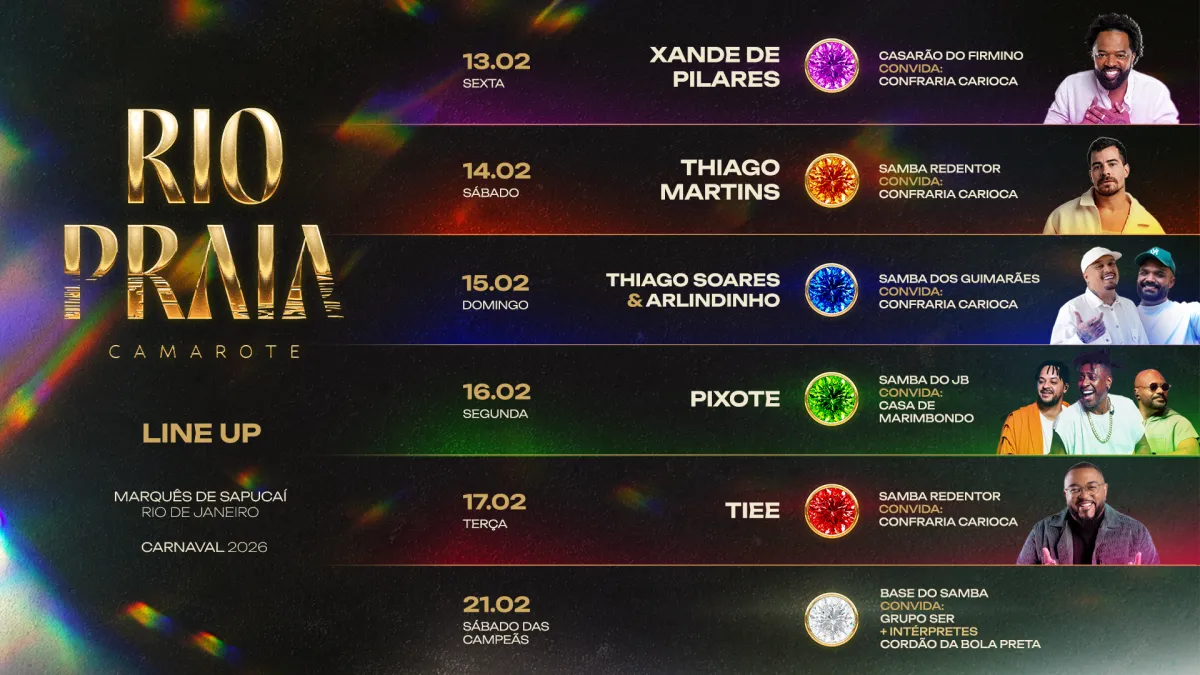 Clique e reserve seu lugar no Camarote Rio Praia 2026 na Sapucaí.